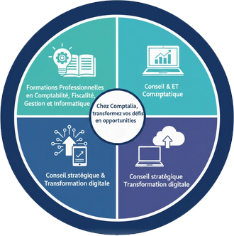 Comptalia DRC Consulting Sarl, nous accompagne les entreprises à chaque étape de leur développement grâce à une expertise complète en comptabilité, finance, fiscalité, juridique, informatique, digital, conseil et formation. Nos solutions sont conçues pour améliorer votre performance, sécuriser vos opérations et accélérer votre croissance.